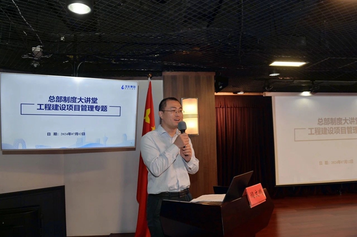 7月12日,乐投(中文)官方网站总部制度大讲堂第七讲开讲。集团置业资源部高级主管(一级建造师)闫文鹏围绕工程建设项目管理相关制度及相关实操流程进行了系统讲解。